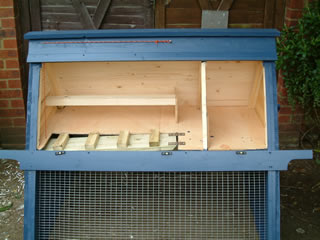 This chicken ark is suitable for 3-4 small or medium birds. Larger versions are available. It is constructed from 19mm tongue and groove timber with weldmesh run area There are removable panels for housing and nest box and removable end panels on run section. The ramp can be lifted to secure your chickens at night. Easily moved by 2 people. It can be finished in a variety of colours.
