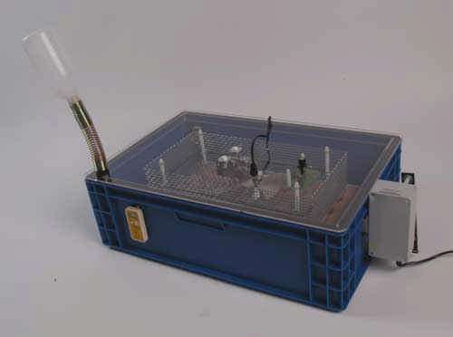 Vision 50 Automatic £205This is an excellent, circulated-air incubator Suitable for all species of egg, offering precision control of temperature and humidity. The vision 50 has an almost indestructible base, which is very easy to clean, having no attached parts, and a complete;y clear plexiglass cover, giving excellent vision of the eggs. The smooth running fan gives even temperature and humidity throughout the incubator. the Electronic thermostat, which has a fail-safe temperature fuse for extra protection, coupled with the the new digital thermometer, gives easy and accurate temperature control and a dial-type hygrometer is also supplied.Water is supplied to the base of the incubator by means of an inverted bottle an tube which is inserted through the top. A small motor unit mounted on the side of the incubator gives fully automatic, continuous turning by means of a rod which moves the grid in which the eggs are placed. Eggs are turned 1/4 - 1/2 turn every hour. Supplied with a chicken egg grid, others available. |