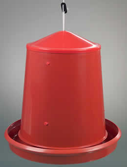Lightweight galvanised feeders. 5 and 18kg can be supplied with a rain shield so they can be used outside. Adjustable for different feed sizes and can be hung from central rod.