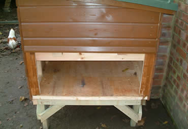 Shown here with the optional stand which provides a dry feeding area under the chicken shed